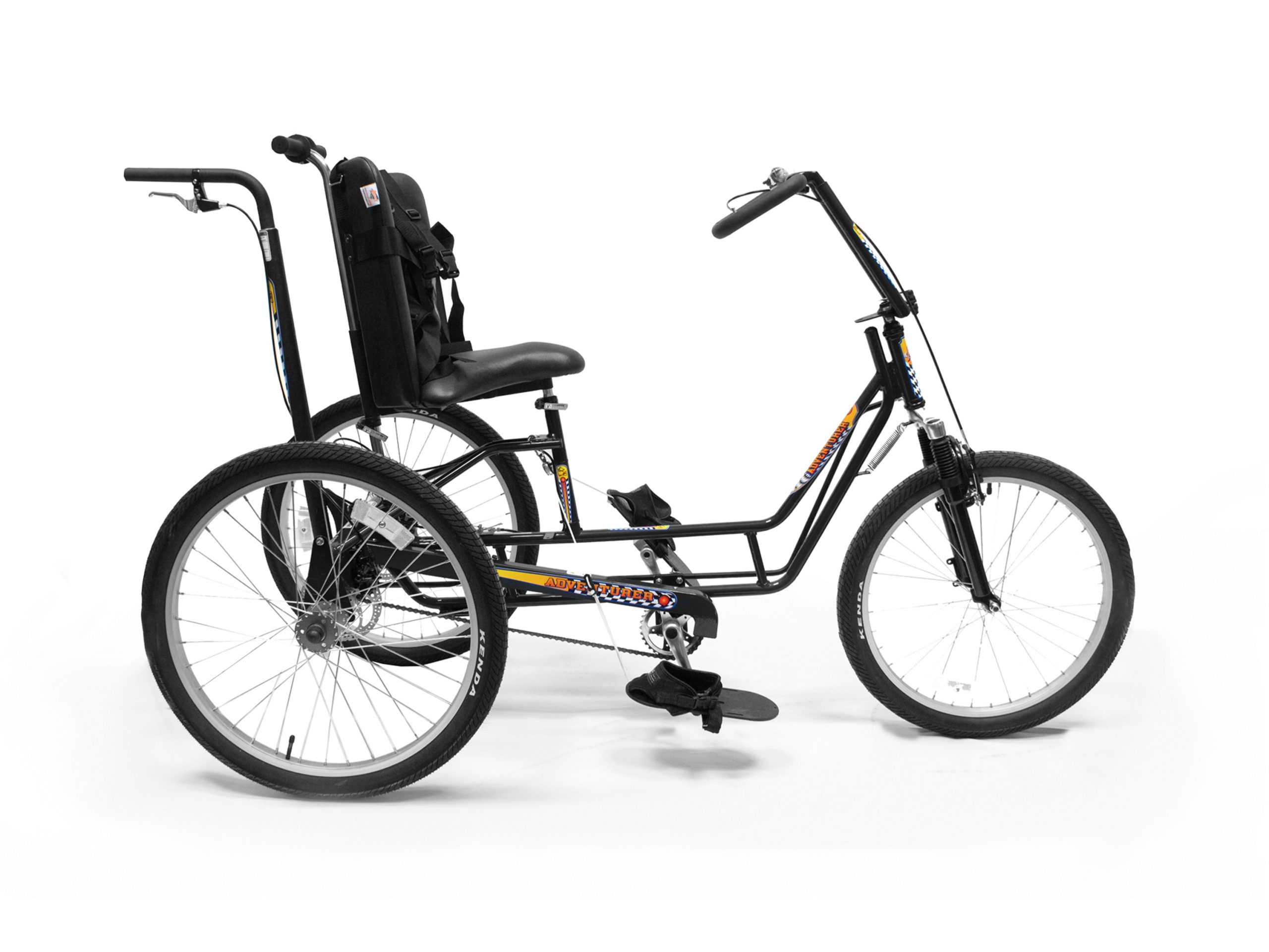 Our trademarked Rear Steer™ system allows the caregiver to steer or brake from behind the adaptive...