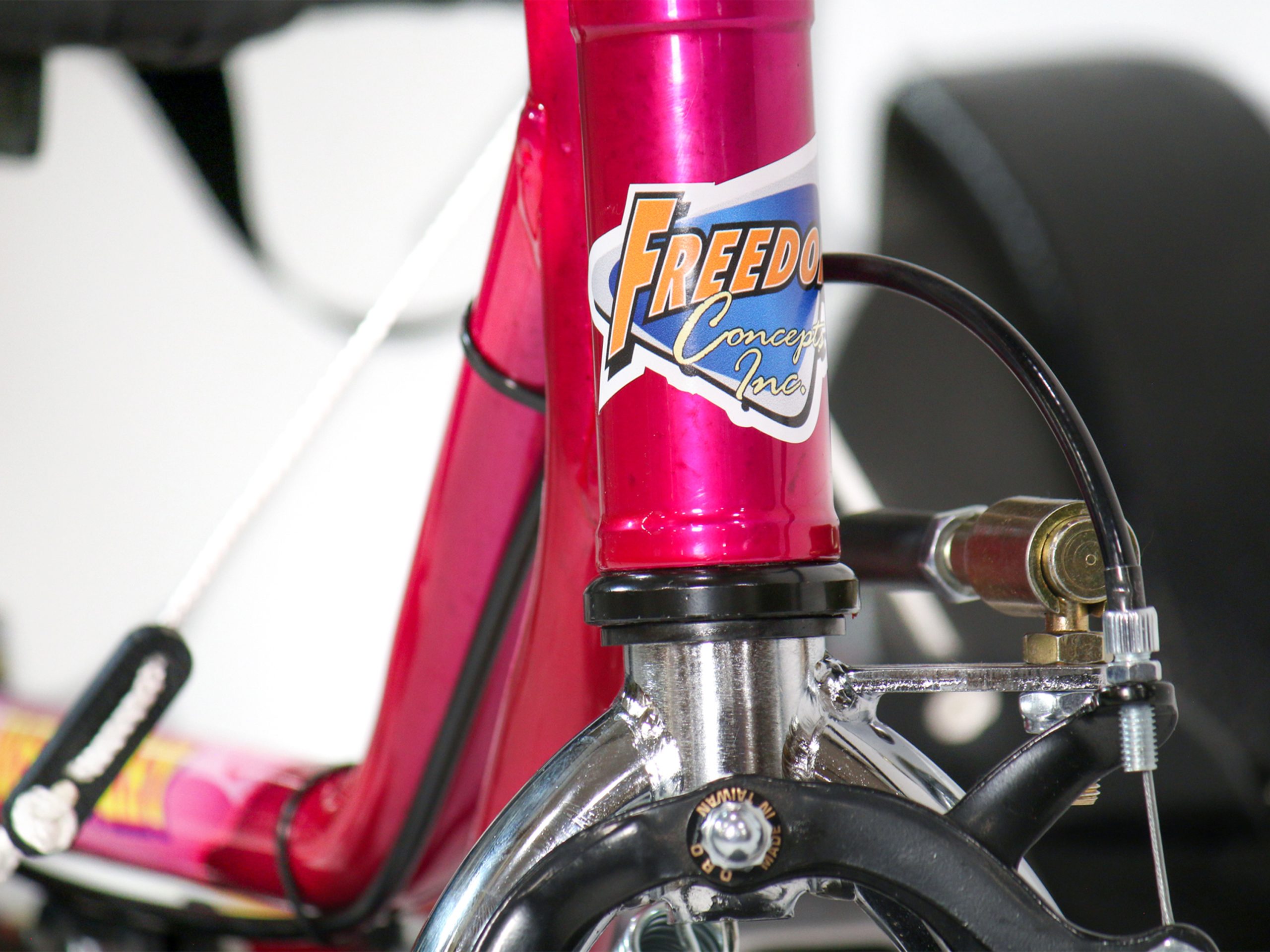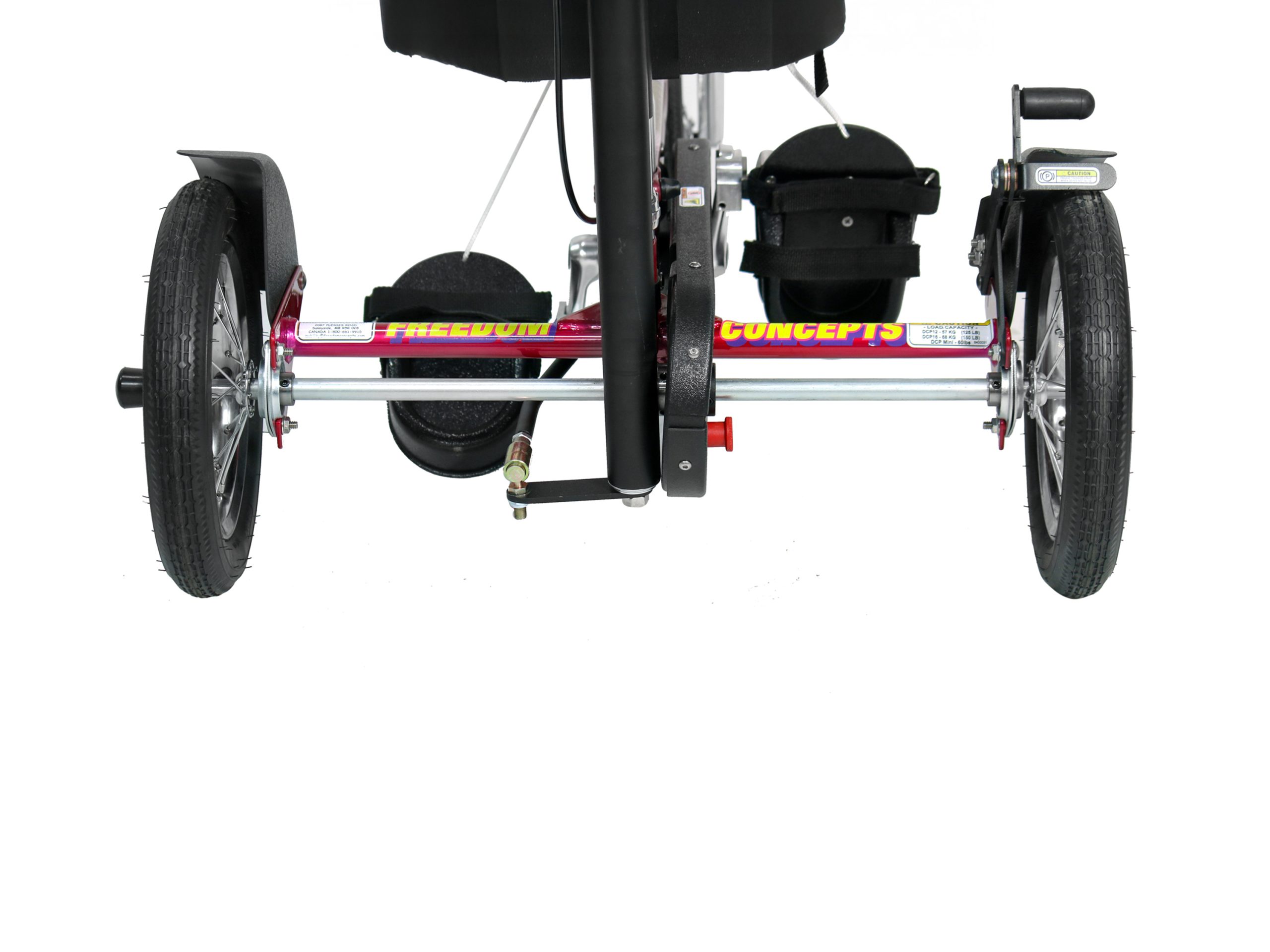 Our trademarked Rear Steer™ system allows the caregiver to steer or brake from behind the adaptive...