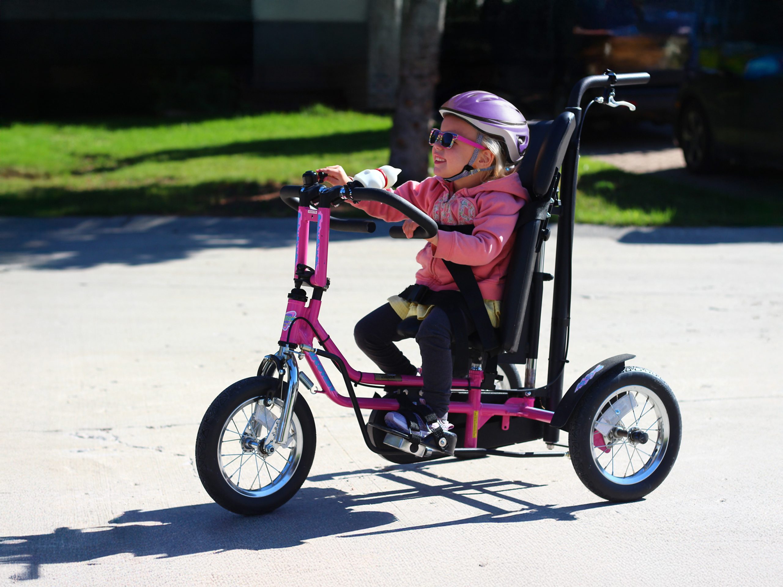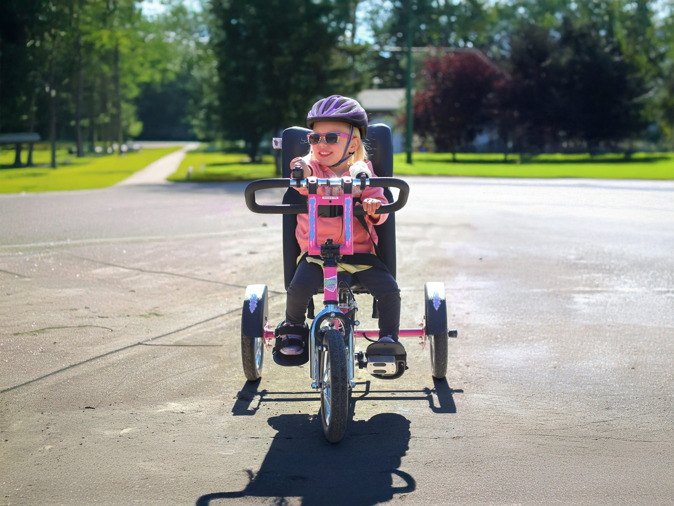 Designed for our smallest riders, the DCP Mini is an upright adaptive tricycle. The DCP Mini can help riders as young as 18 months old all the way up to 5 years old reach therapeutic milestones, all while introducing them to the joys of adaptive biking.