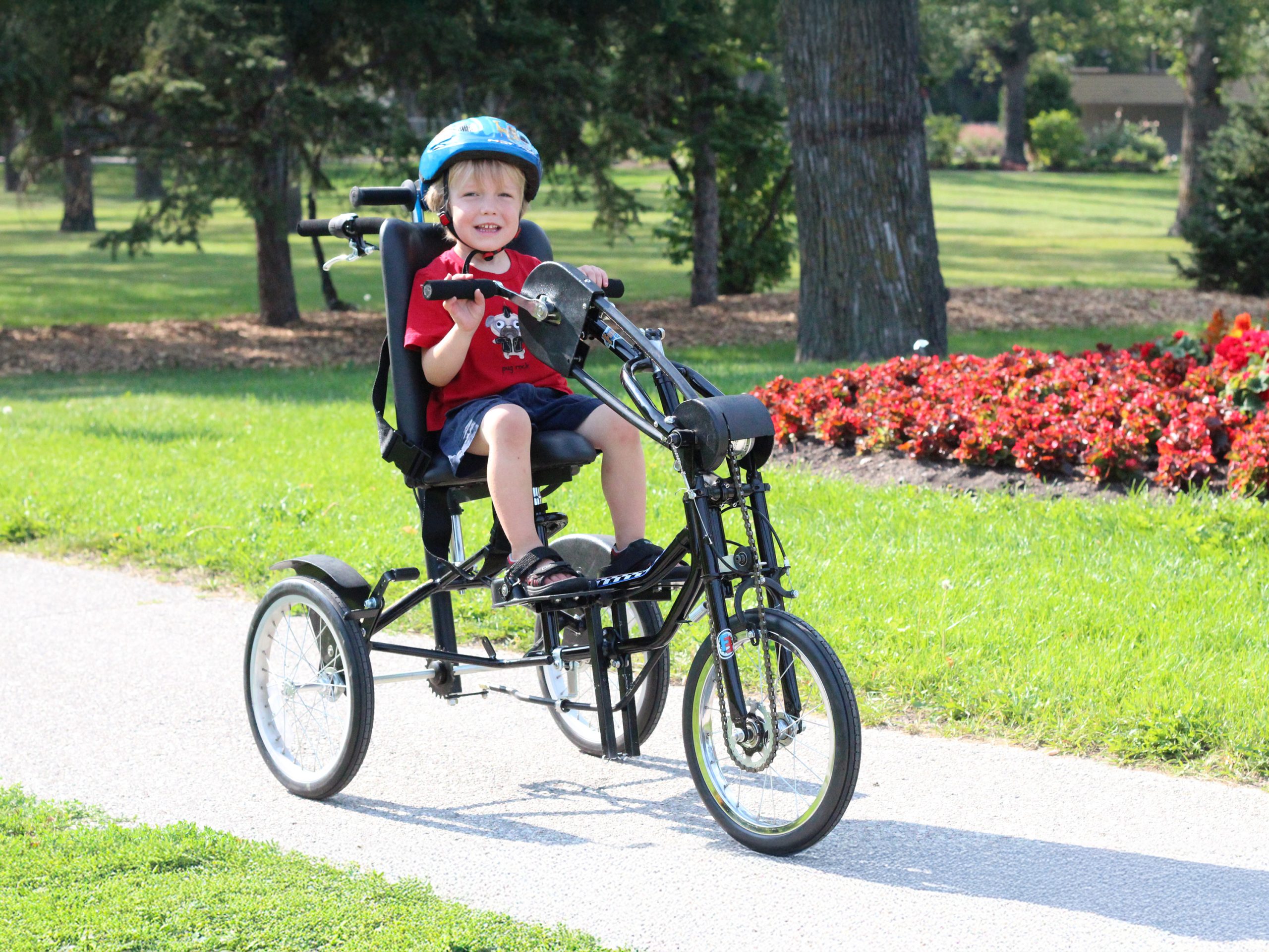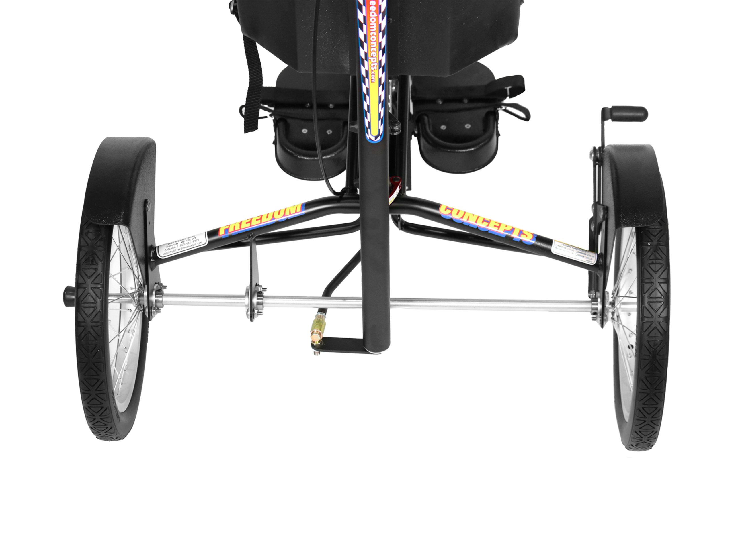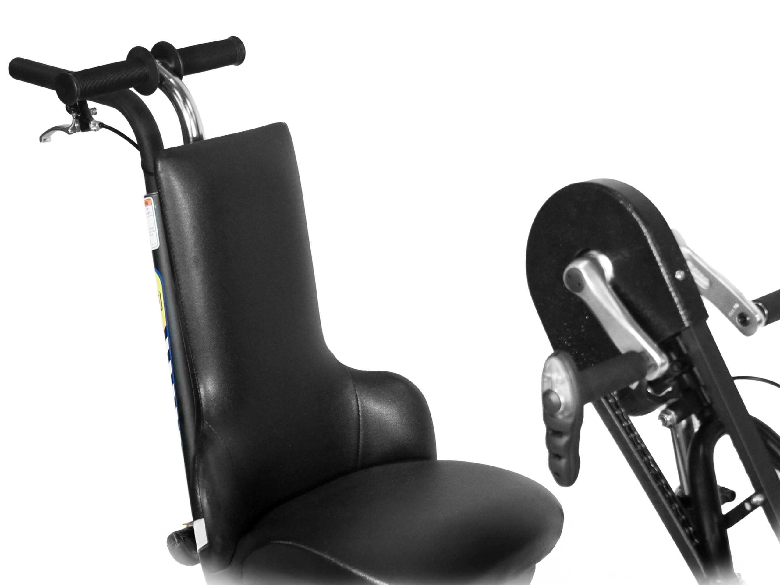 Our trademarked Rear Steer™ system allows the caregiver to steer or brake from behind the adaptive...