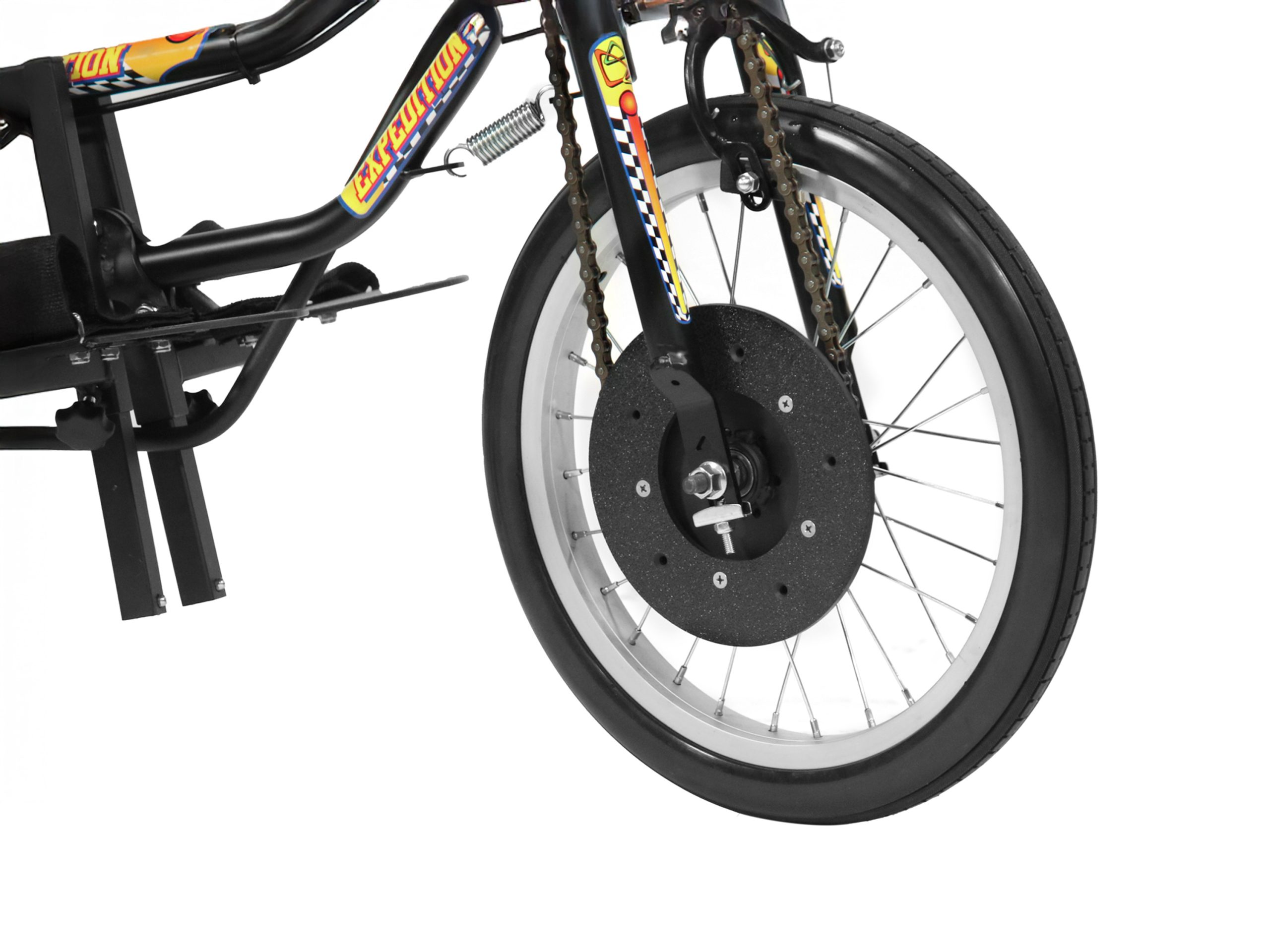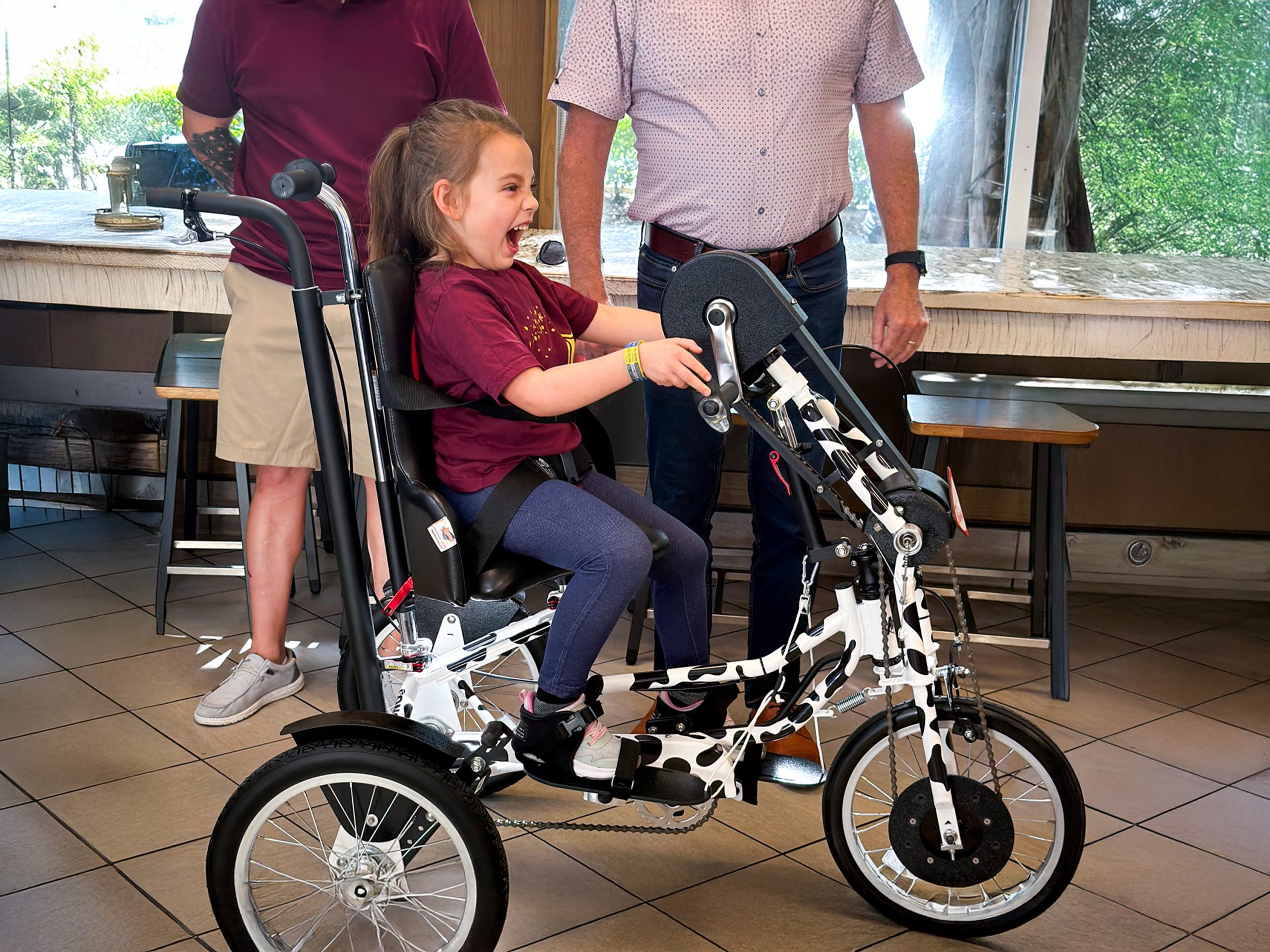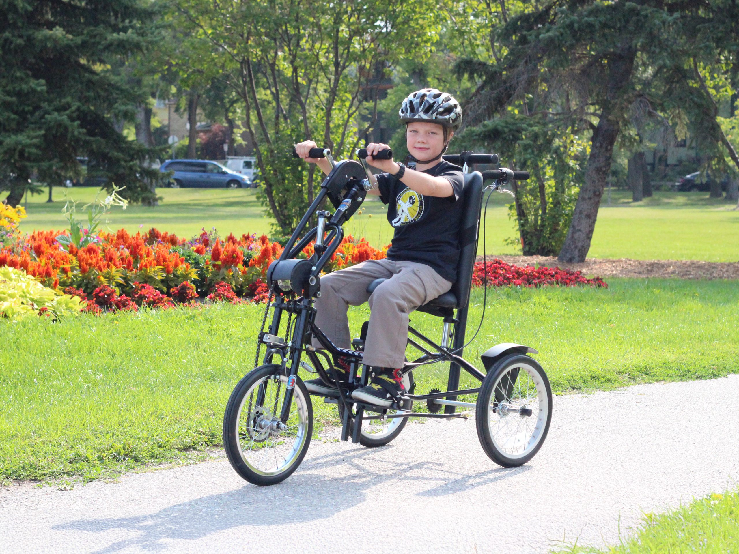 Our trademarked Rear Steer™ system allows the caregiver to steer or brake from behind the adaptive...