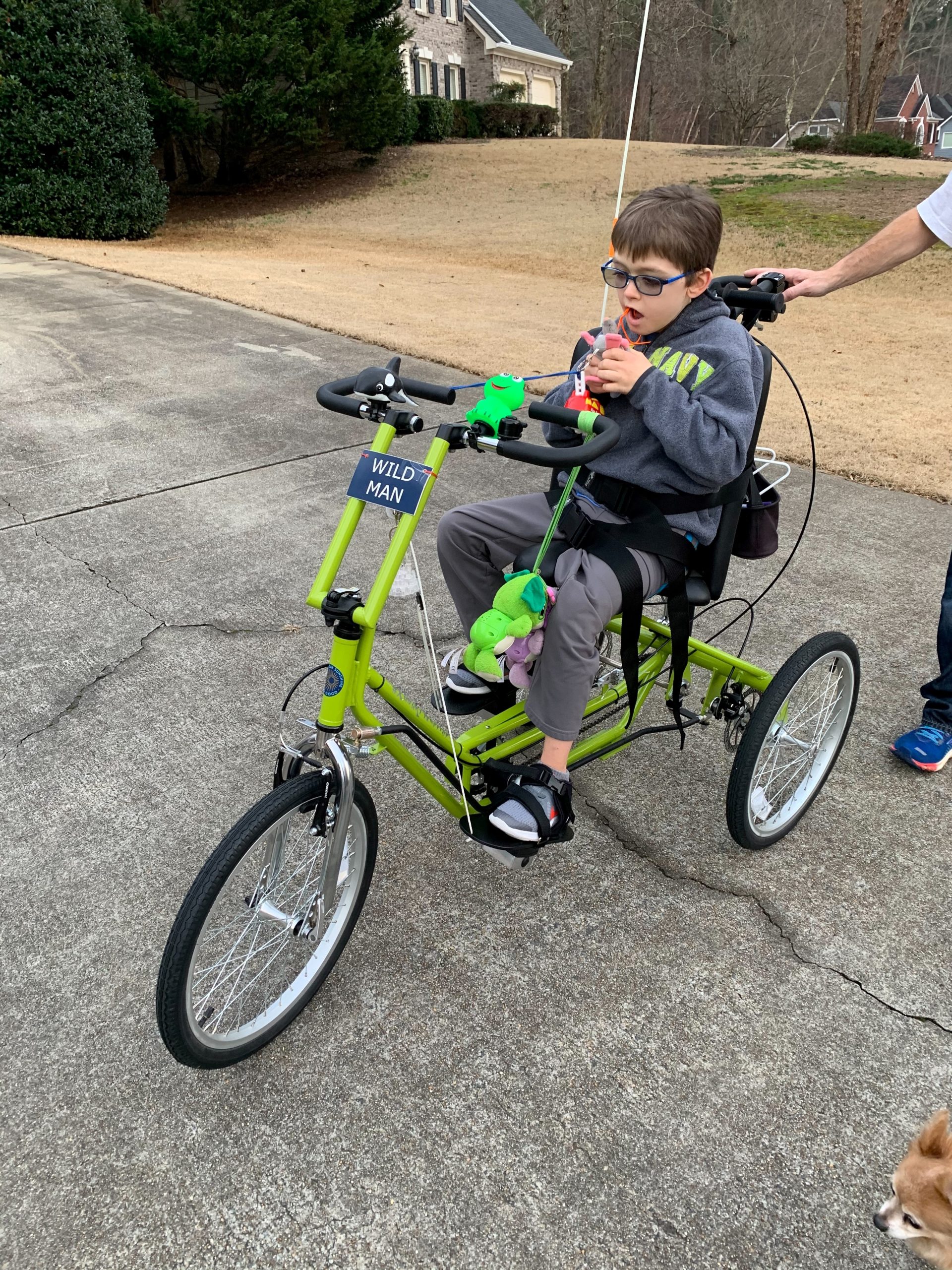 Julie recommends the jogging handle to families who are considering adding the Rear Steer feature to their adaptive bike.