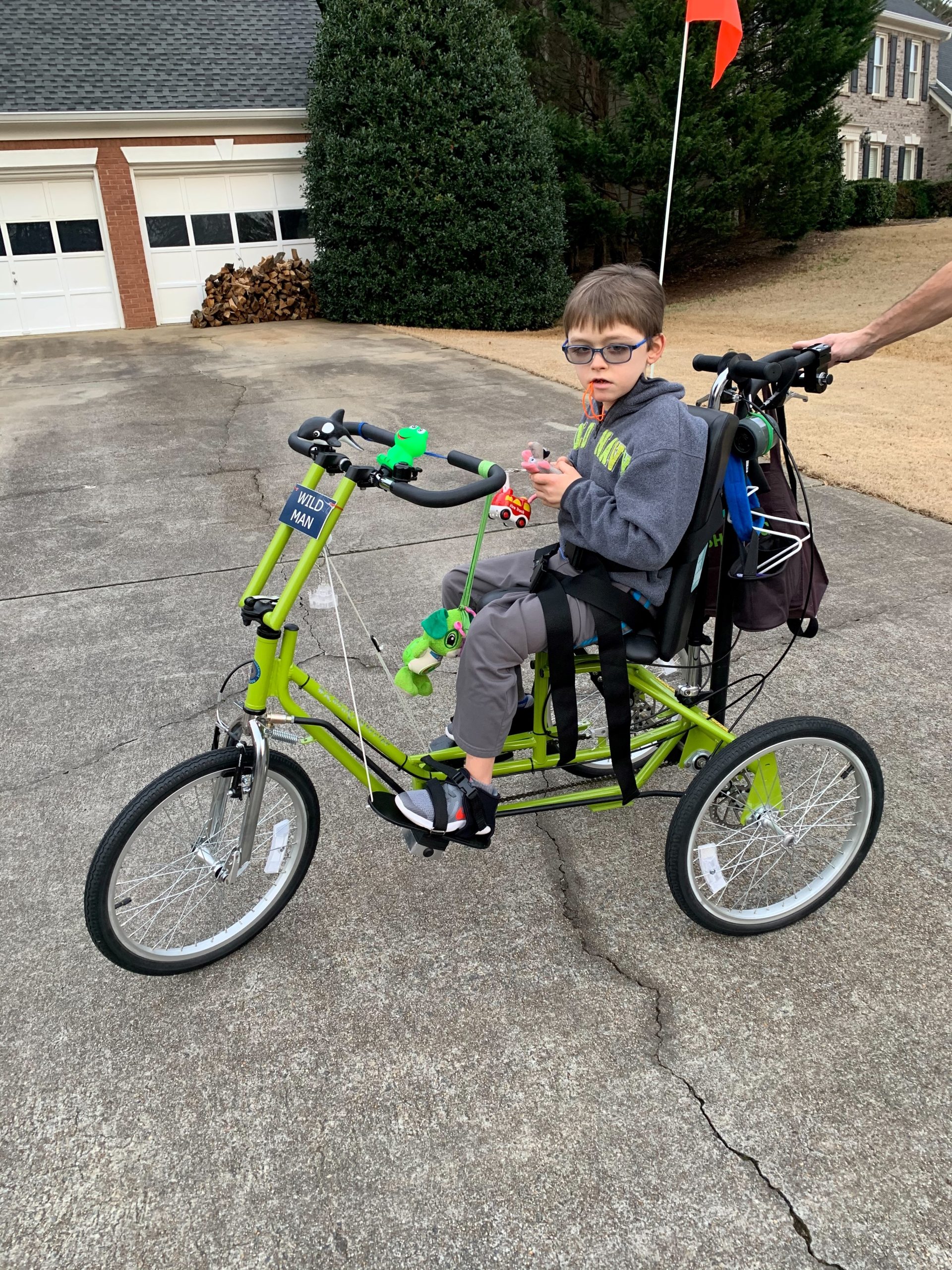 After Cristian was done with the bike, Julie gave it to another family. Cristian didn’t use another adaptive bike from Freedom Concepts until his physical therapist brought one to their house for him to try a couple of years ago.