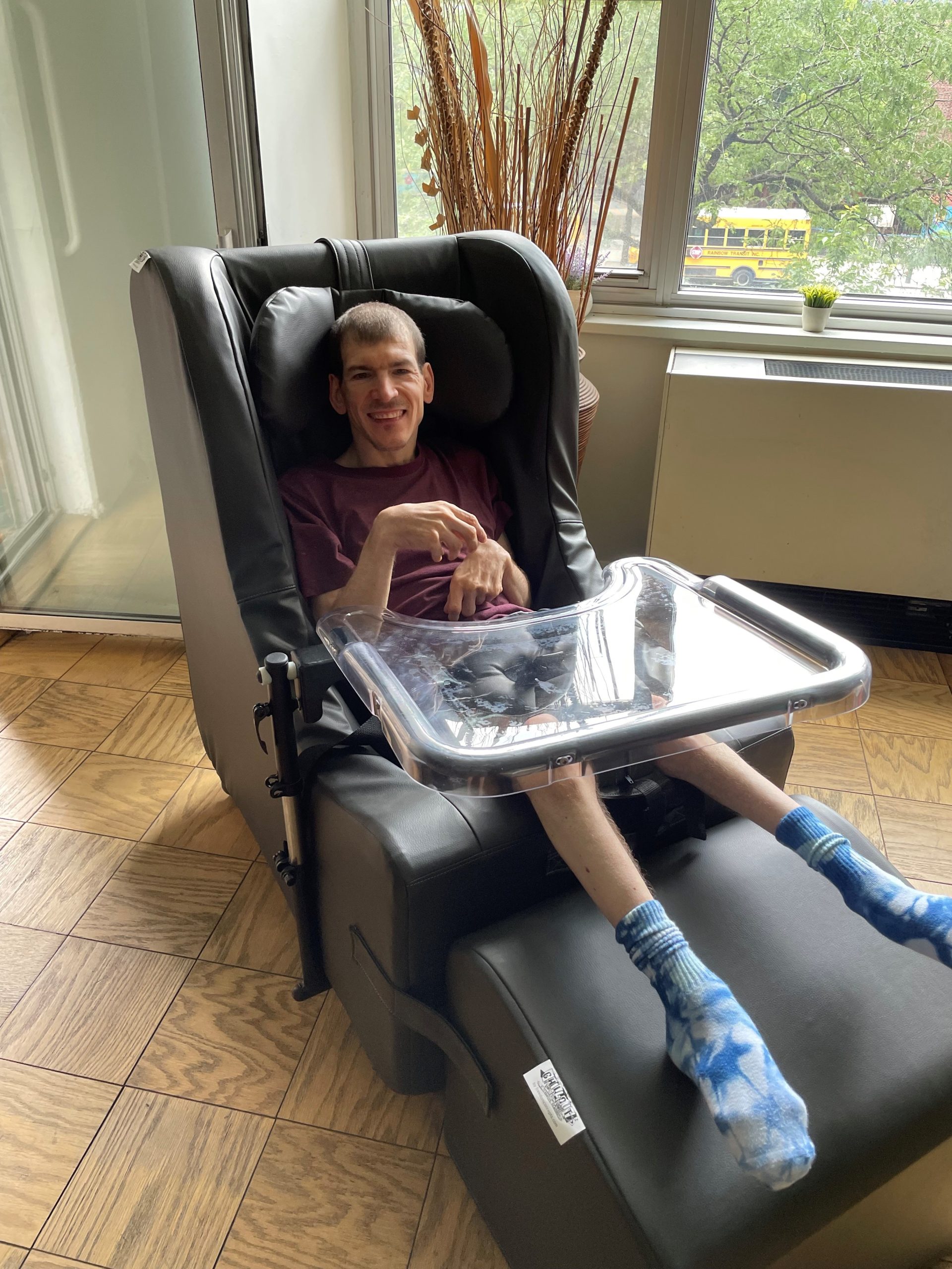 Since Matthew received his Chill-Out Chair three months ago, he has used it every day, and he smiles every time he goes in it.