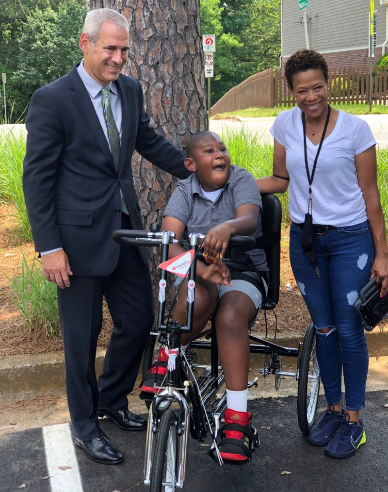 In May, Winfred received a new adaptive bike that was donated by a local law firm.