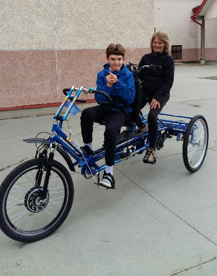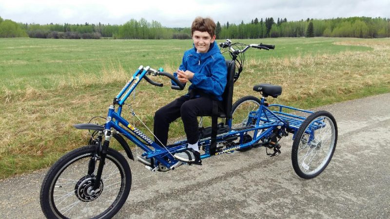 Chase’s mobility has now decreased, which means he needed a more specialized bike. Through the help of an awesome school support team, support from parents, and Jordan’s Principle, Chase has now received his new ET2611 Tandem adaptive bike with electric assist motor! Chase and his family will donate his adult tricycle to another family in need.