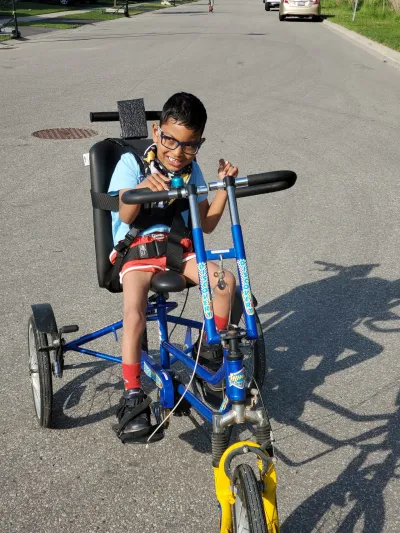 Vinita said that Akshat was very excited when he received his DCP 16 in January, and couldn’t wait for summer to arrive so he could go for bike rides. Before they had the bike, Akshat would ride in a stroller while his brother rode a bike, and Vinita said Akshat would get upset.