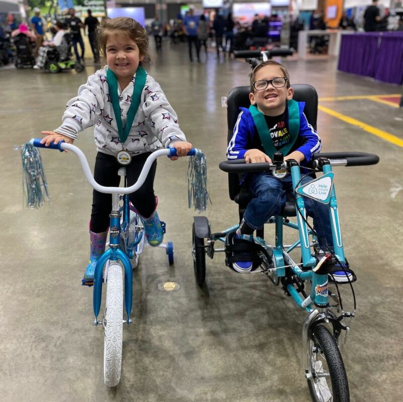Austin loves the bell on his bike, when he first received it, he rang the bell again and again riding down the aisles of the Abilities Expo.