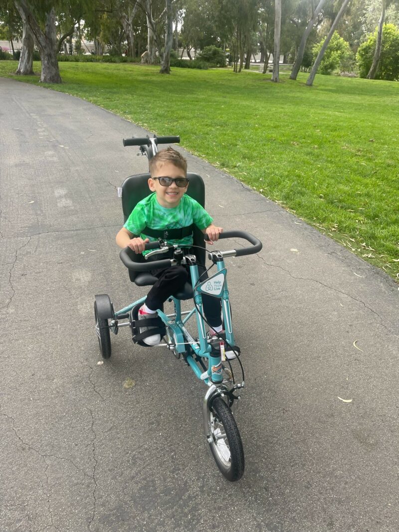 She added that the bike’s rear steering is helping to beat Austin’s spasticity because she can help push him along even when he is feeling too tired to try and pedal.