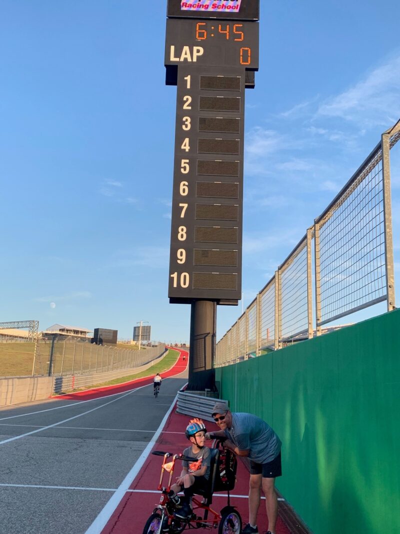 8-year-old Levi Kleen hit the Circuit of The Americas Formula 1 track on his Freedom Concepts bike, while cyclists cheered him on.
